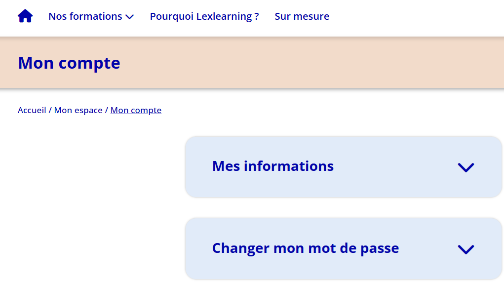 Via la rubrique Mon compte de votre espace personnel Lexlearning :
