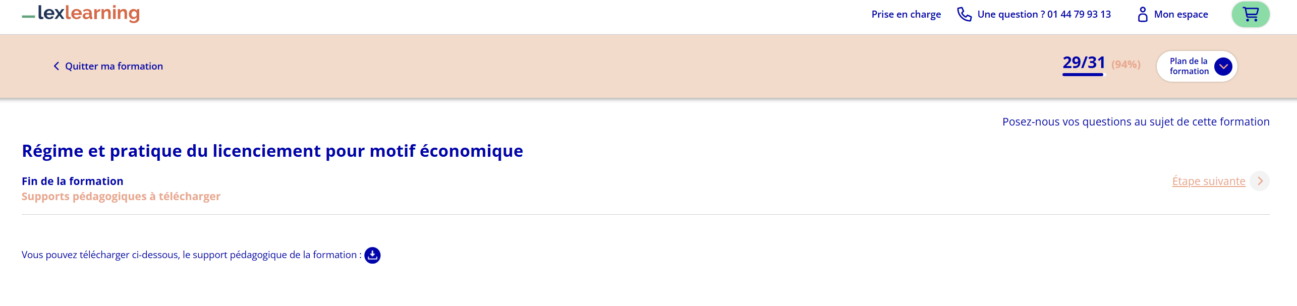 En fin de formation il vous est également proposé lors d'une étape de télécharger le support pédagogique de la formation.