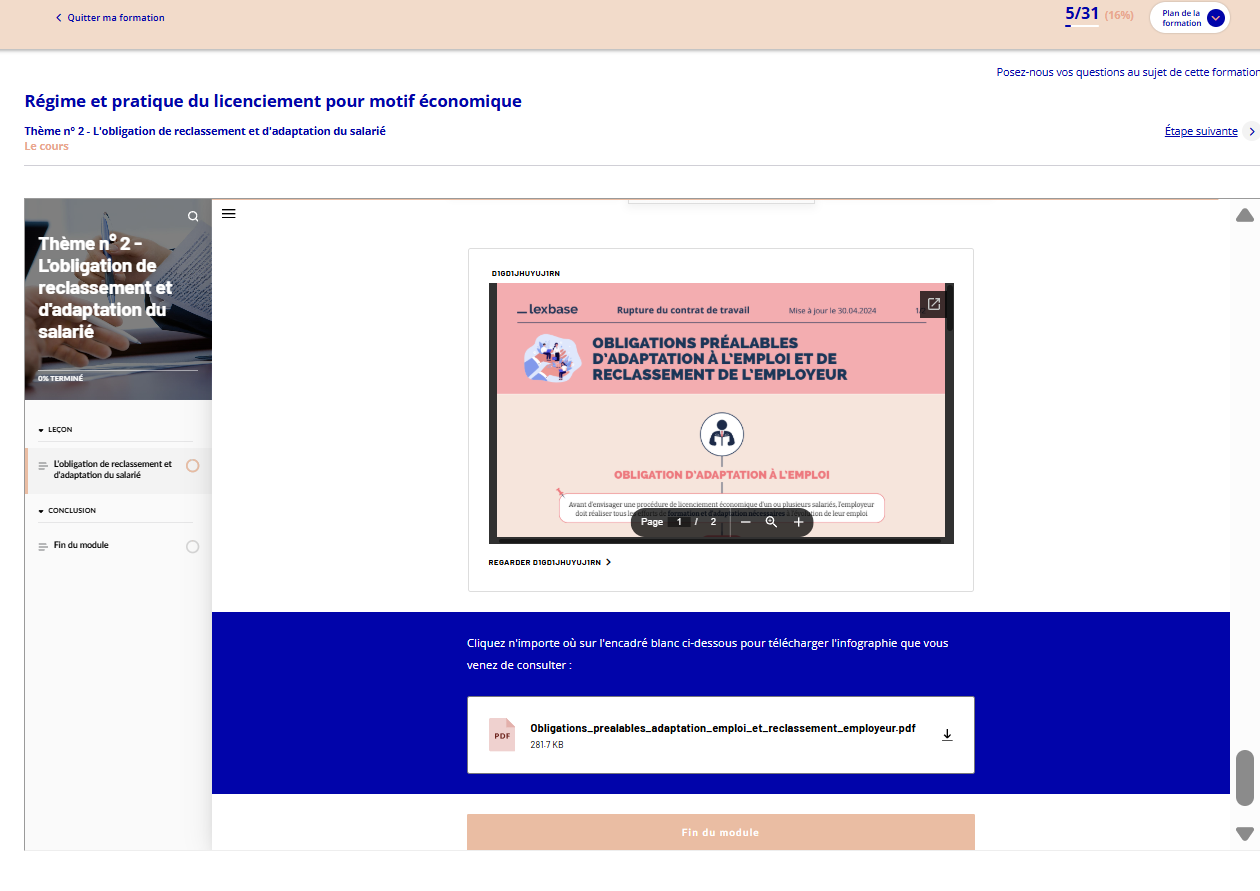 - Téléchargement d'une infographie dans un module de formation :