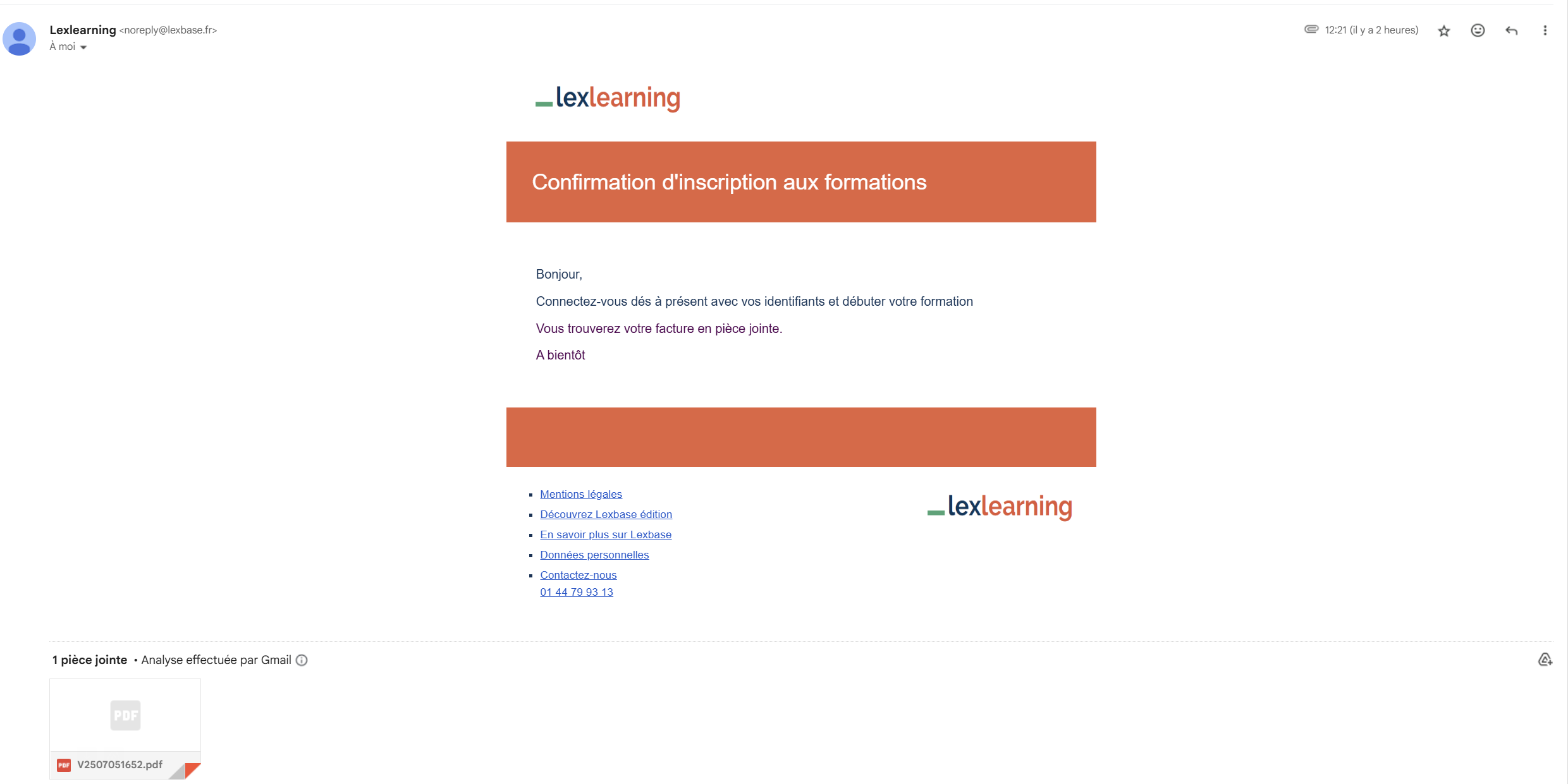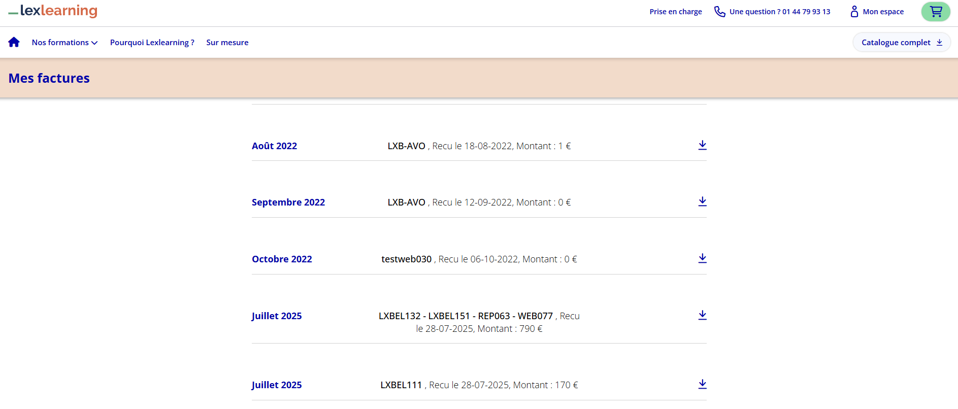Vous pouvez nous faire une demande via l'aide en ligne, par mail via formations@lexlearning.fr, ou par téléphone au 01 44 79 93 13.