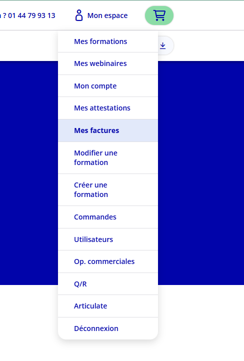 Toutes vos factures sont également téléchargeables dans votre espace personnel, rubrique mes factures en haut à droite de l'écran.