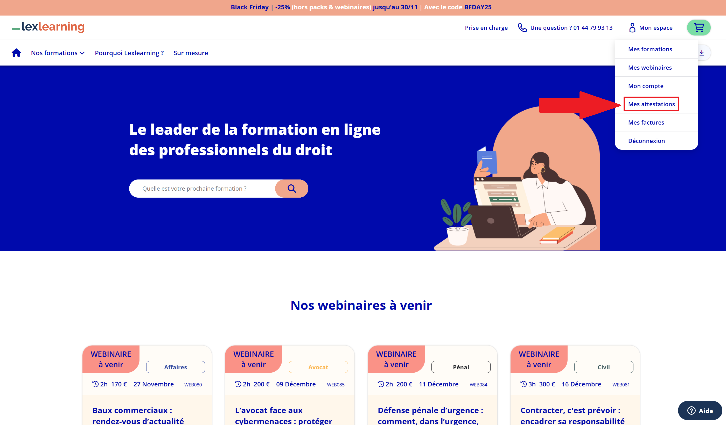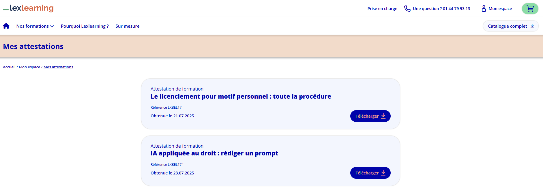 Votre attestation sera disponible en téléchargement dans votre espace Lexlearning.